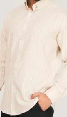 Keep your style effortlessly classic with this LUVIN Premium Beige Stripe Shirt. The soft, neutral tone and finely spaced vertical stripes give a clean, sophisticated look perfect for office, meetings, or daily wear.